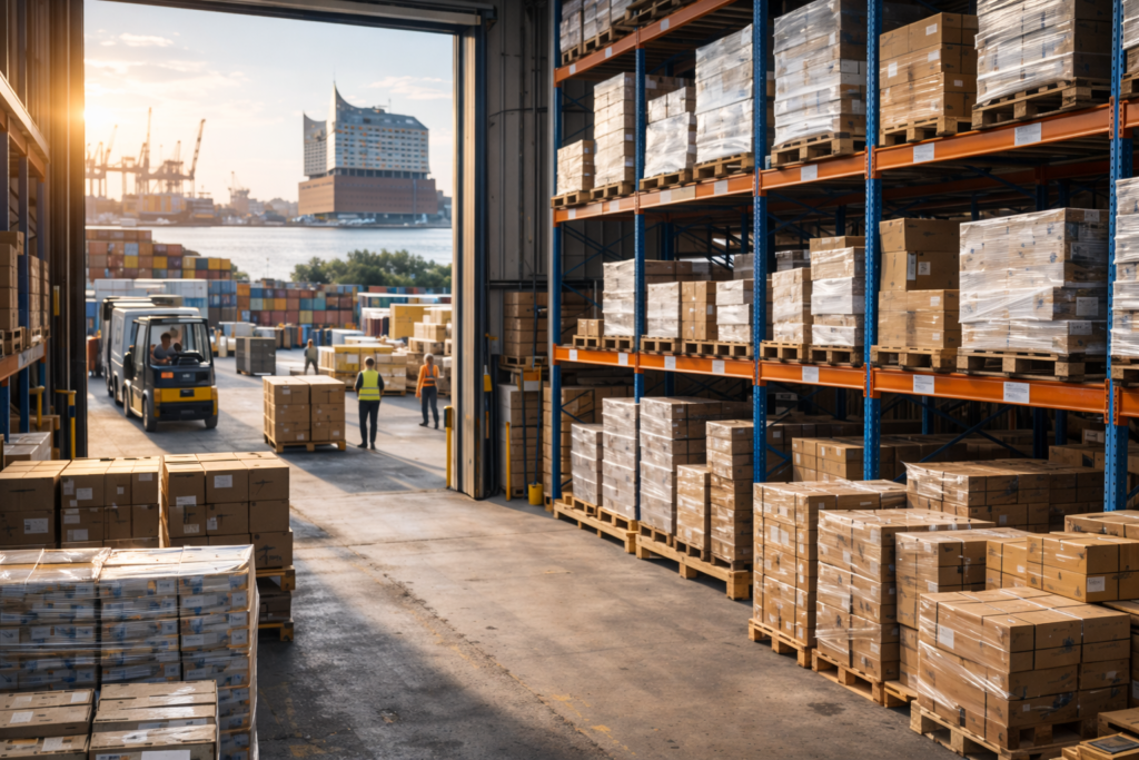 Zentraler Lagerstandort in Hamburg-Ottensen (22763) mit schneller Anbindung an Hafen und Autobahn für reibungslose Warenbewegungen.